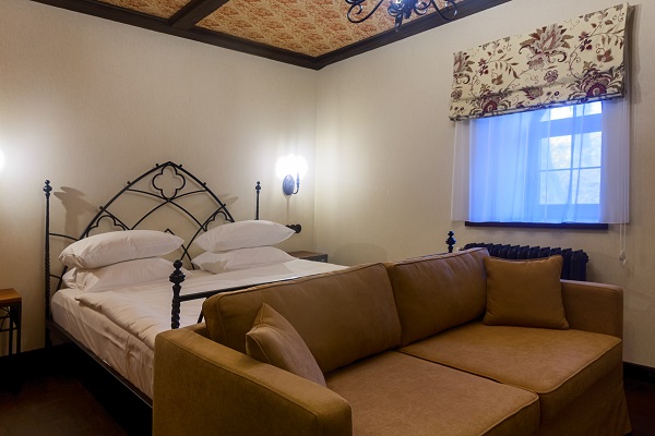Отдыхающим в отеле предлагают 20 комфортабельных номеров, где могут разместиться 60 человек. Это номера категорий Джуниор и Стандарт, интерьер которых напоминает покои замка. Объединение современности и классической старины характерны для каждой комнаты гостиницы. Мебель и полы из натурального дерева, наличие необходимой бытовой техники, мини-бара, телефона, скоростного интернета, ванной комнаты и душа, все это делает номера романтичными и удобными.