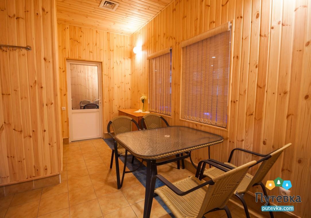 В номере: двух спальная кровать, мягкая мебель, фен, ТВ, телефон, холодильник, электрический чайник, утюг, набор посуды, система кондиционирования воздуха, Wi-Fi в холлах, лечебных отделениях.