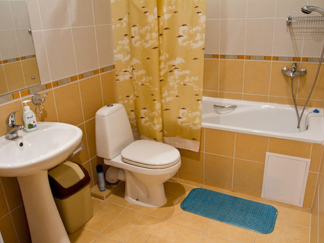 Санузел: с душевой кабиной или ванной,туалетные принадлежности, туалет, умывальник.