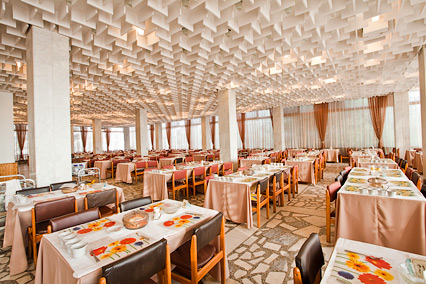 Тариф Без лечения (Оздоровление): проживание, 3-разовое питание (может быть шведский стол или меню-заказ в зависимости от периода проживания и от того, в каком кафе или ресторане питаются туристы согласно забронированной категории номера), оздоровительные процедуры (от 7 дней), пользование пляжем, библиотекой, крытым (от 5 ночей) и открытым бассейнами, анимационные программы, Wi-Fi.