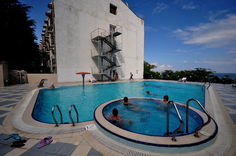 Входит в стоимость. Размером 18*9 метров, пресная вода, подогреваемый, есть отделение для детей. Находится в 1 минуте ходьбы от пляжа, между корпусами №1 и №2. Бассейн работает постоянно в теплое время года (ориентировочно с апреля по октябрь - в зависимости от погодных условий). Санаторий оставляет за собой право закрывать на несколько дней в месяц бассейны на профилактические работы.