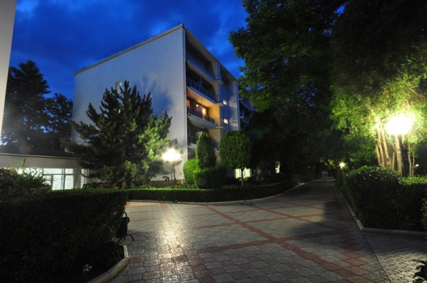 Комплекс отеля, состоящий из трех спальных 3-4-этажных корпусов без лифта, здания столовой и водно-спортивного центра, занимает большую парковую, благоустроенную территорию.